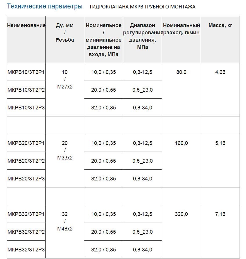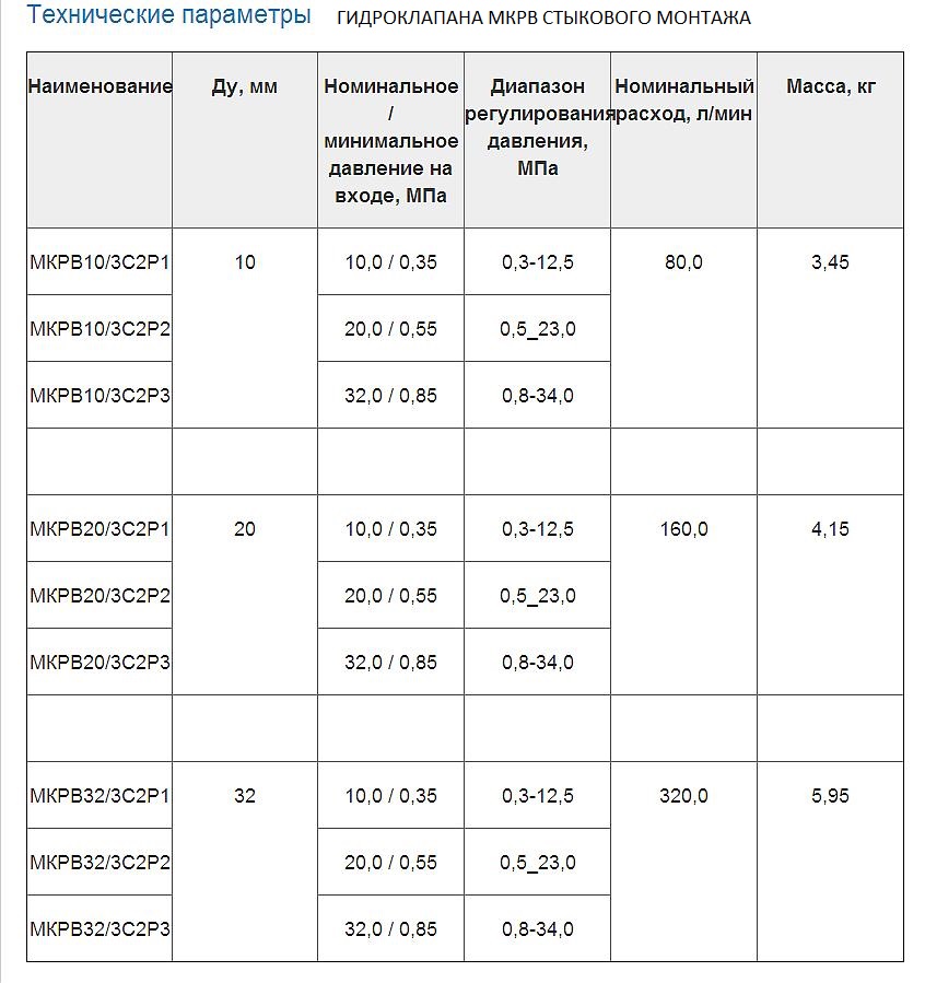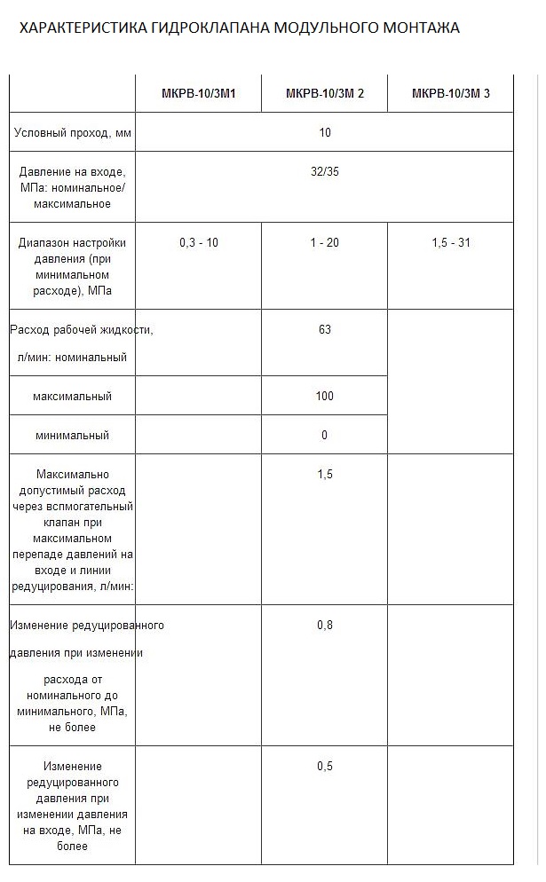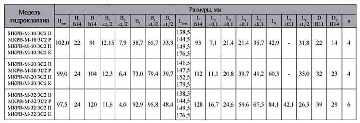 гидроклапанов М-КР 10-10-1, М-КР 10-20-1, М-КР 10-32-1, М-КР 10-10-2, М-КР 10-20-2, М-КР 10-32-2, М-КР 20-10-2, М-КР 20-20-2, М-КР 20-32-2, М-КР 32-10-2, М-КР 32-20-2, М-КР 32-32-2 и