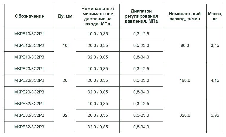 клапанов МКРВ 10/3 МР1, МКРВ 10/3 МР2, МКРВ 10/3 МР3, МКРВ 10/3 С2Р1, МКРВ 10/3 С2Р2, МКРВ 10/3 С2Р3, МКРВ 20/3 С2Р1, МКРВ 20/3 С2Р2, МКРВ 20/3 С2Р3, МКРВ 20/3 Т2Р1, МКРВ 20/3 Т2Р2, МКРВ 20/3 Т2Р3.