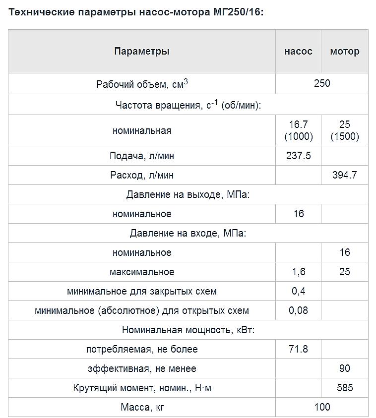Реверсивное валовое вращение имеет тип насос-мотора МГ250/16. Он является аналогом насос-мотора типа 310.3.250, который производится екатеринбургским ОАО «Пневмостроймашина» в Российской Федерации, а также один из аналогов немецкого «Rexroth» насос-мотора типа A2FO250.